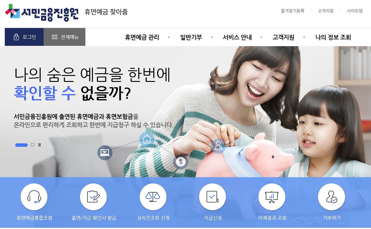 서민금융진흥원에서는 '휴면예금 찾아줌' 이라는 사이트를 오픈하고, 휴면예금을 찾고 기부까지 진행할 수 있도록 도움을 주고 있습니다. 간단히 사용하는 방법 소개해드리도록 하겠습니다.