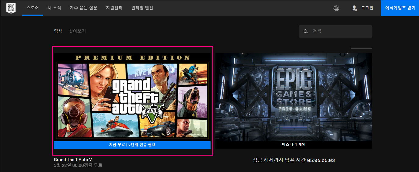 GTA5 무료 다운로드 이벤트! 에픽게임즈