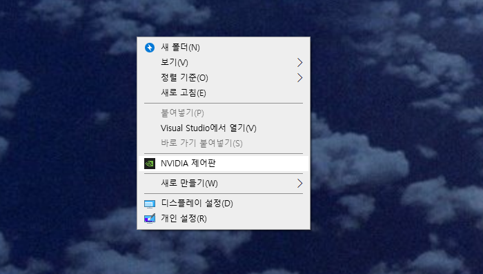 1. 바탕화면 > 마우스 우클릭 > NVIDIA 제어판 실행합니다.