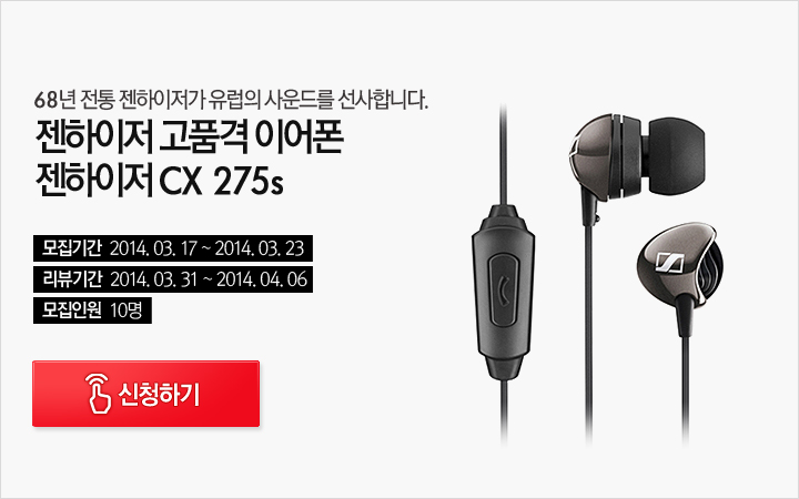 이어폰 브랜드 중 젠하이저의 품질을 의심하는 사람은 거의 없습니다. 68년 전통의 젠하이저의 고품격 고해상도 사운드를 경험할 수 있는 젠하이저 CX 275s는 17~23,000Hz 의 폭 넓은 음역대를 느낄 수 있으며 우리나라 사람들이 좋아하는 저음부를 잘 표현하는 것이 특징인 제품입니다.