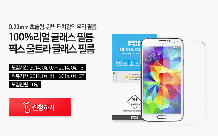 이번 주에 갤럭시S5를 받아 사용하게 될 것 같은데 <픽스 울트라 글래스 필름>을 부착해서 안전하게 활용할 수 있으면 좋을 것 같네요~! 원츄 아이템!